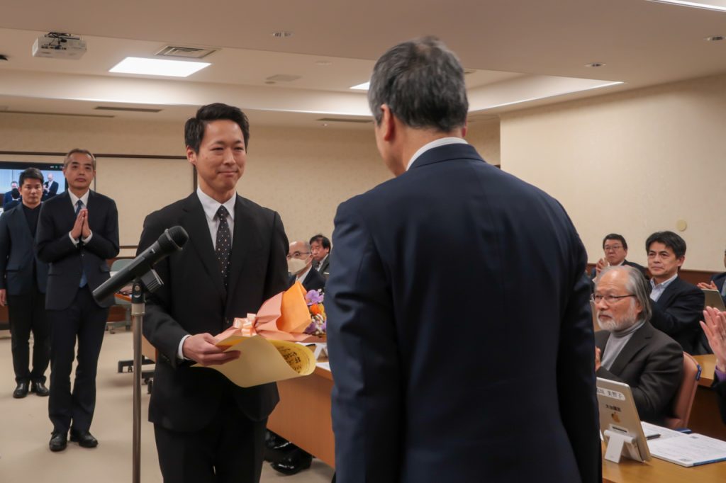 松田昇也准教授が,本学の令和7年度功労表彰を受賞しました.受賞課題は「宇宙天気の三次元計測と能動的放射線帯制御に向けたプラズマ波動の長距離伝搬機構の解明」で,JAXA-SMASHに採択された超小型衛星IMPACTに関する功績を評価されました.2026年3月18日に表彰式が執り行われ,和田隆志学長からIMPACTの成功を期待する激励のお言葉を頂きました.